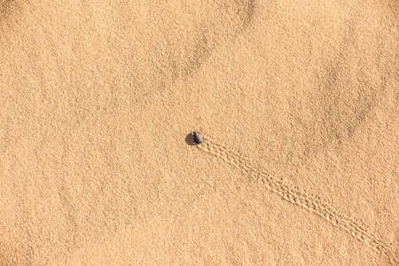 Scarab digs a hole in the sand, Sahara desert, Tunisia