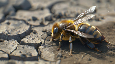 Resilient Beetle on Parched Cracked Earth Under Arid Conditions