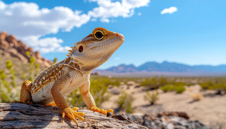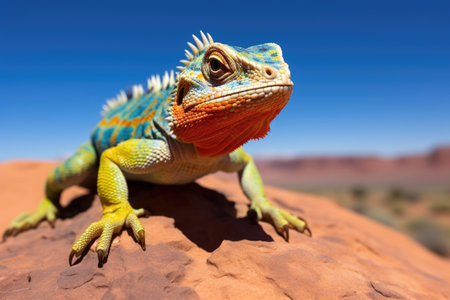 a colorful lizard basking in the sun atop a desert rock, created with generative ai