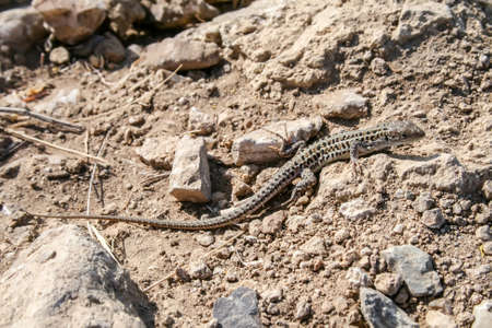A common wall lizard podarcis muralis basking in the sun : Generative AI