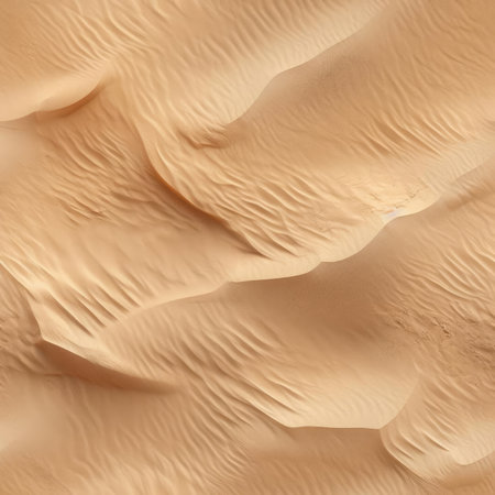 This captivating image showcases the abstract beauty of sandy dunes in the desert. From an aerial perspective, the landscape reveals intricate ripples and textures that create a mesmerizing visual effect. The composition combines the warm tones of the sand with the organic patterns formed by wind and time. Immerse yourself in the serene and otherworldly ambiance of this stunning desert scene, perfect for capturing the essence of tranquility and natural wonder