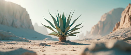 AI Generated. Green agave plant growing in a rocky desert landscape under bright sunlight