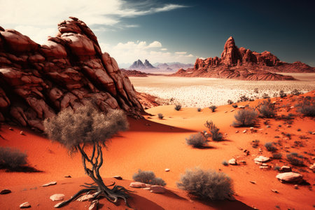 Desert landscape in Wadi Rum, Jordan. Generative AI
