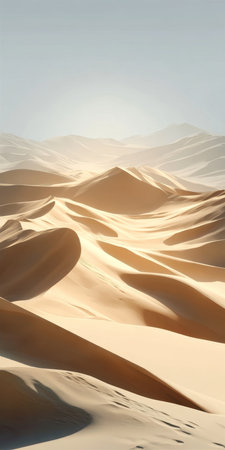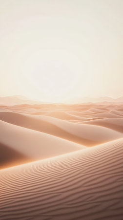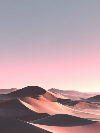 Tranquil Sunset Over Rolling Sand Dunes in Majestic Desert Landscape with Soft, Warm Light
