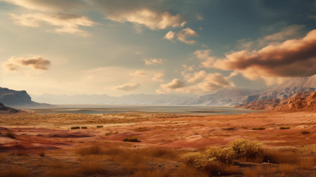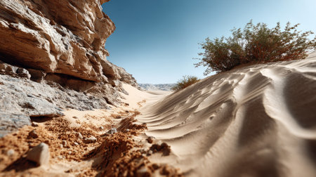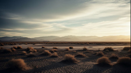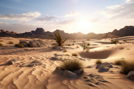 Realistic desert scenery with spring vibes portrayed through a neutral color scheme and warm lighting. Highdetail artwork with no human presence. Generative AI Generated