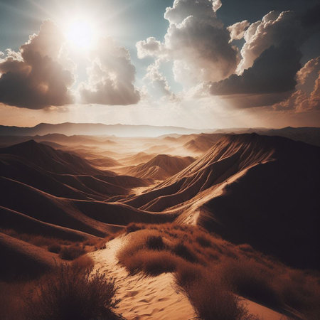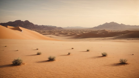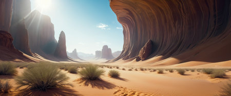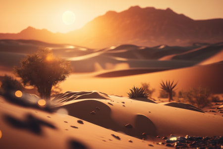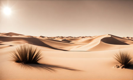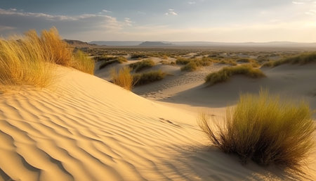 Sunny desert landscape, tranquil beauty in golden hues