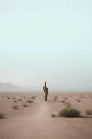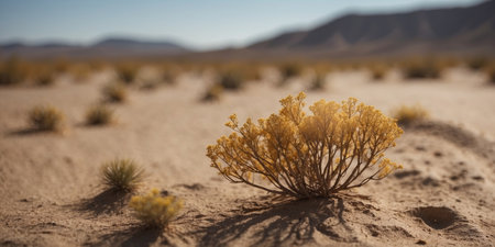 AI Generated. A solitary bush in the vast desert landscape
