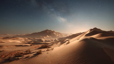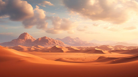 A desert with sand and mountains. Generative AI.