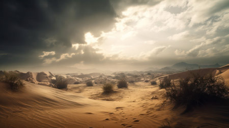 Stormy sky over the desert, storm clouds and rain. Generative AI