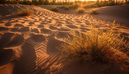 Tranquil scene of rippled sand dunes at dusk generated by artificial intelligence