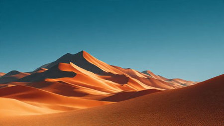 Discover the allure of desert beauty with this stunning image featuring serene sand dunes and a clear blue sky, evoking tranquility and warmth in a natural landscape.