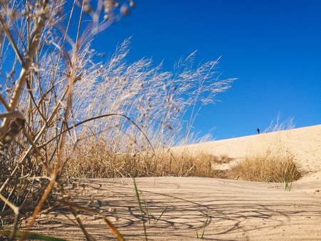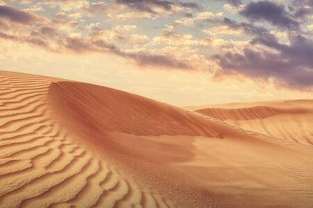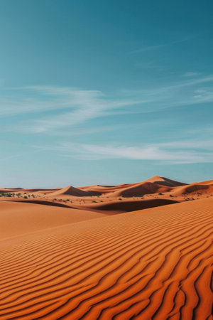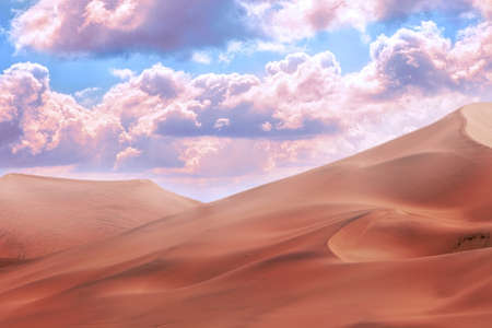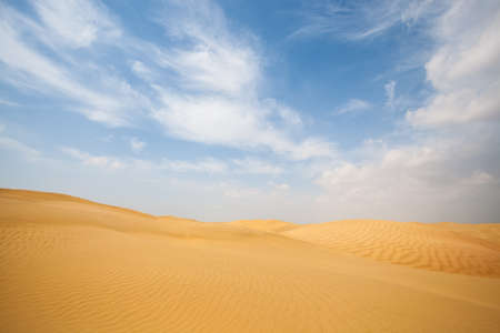 Desert landscape with beautiful sand dunes and blue sky. Sand dunes