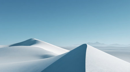 Vast and tranquil desert landscape featuring stunning white sand dunes under a clear blue sky, creating a perfect scene for nature lovers and travel enthusiasts.