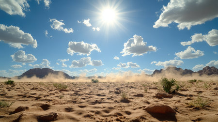 Experience the awe-inspiring beauty of a sun-drenched desert. Capture the essence of travel and adventure with this stunning landscape. Perfect for conveying a sense of exploration, freedom, and the vastness of nature.