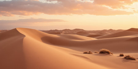 AI Generated. Sand dunes at golden hour in a vast desert landscape