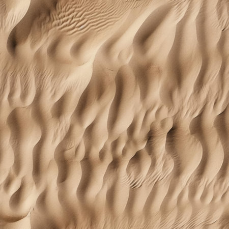Close-up of rippled sand dunes showing natural light and shadow patterns across the granular surface.