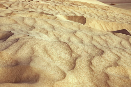 With showing close-up view of rippled sand textures in a desert landscape with soft, warm light. resolution use.