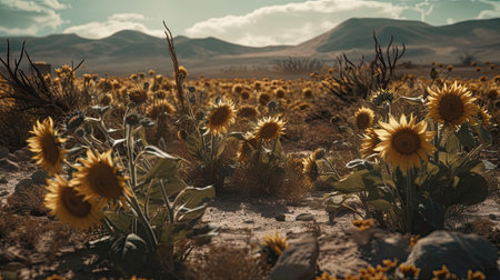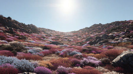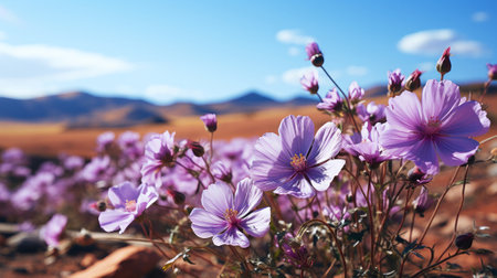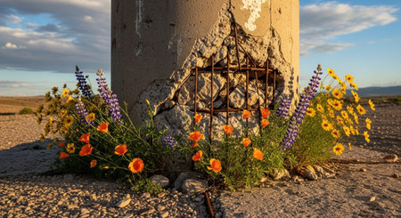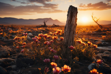 Vibrant wildflowers bloom in barren landscape adding color and life