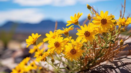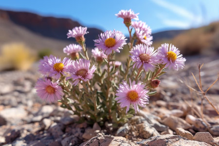 mojave aster flowers swaying in gentle breeze, created with generative ai