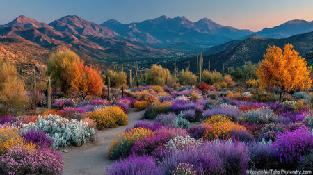 Desert oasis bursting with springtime bloom and vibrant flora. AI Generative