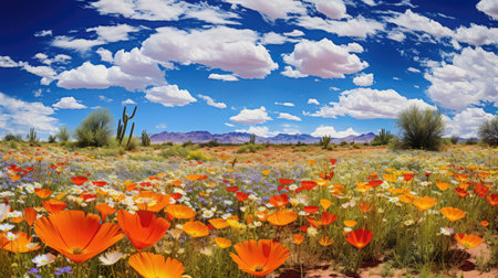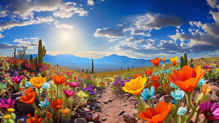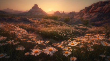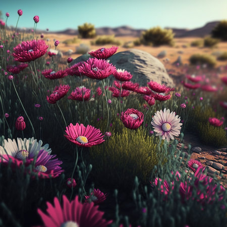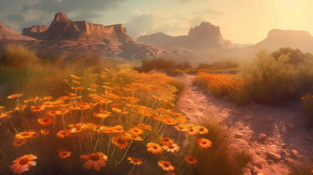 vivid wildflowers blooming in a sunlit canyon, created with generative ai