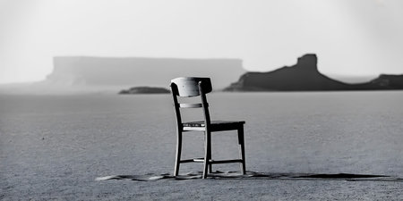 Visualize a lone chair in a vast, empty landscape, promoting self-reflection and contemplation of inner peace --chaos 30 --ar 16:9 --v 6.1 Job ID: 97c77efe-dd9c-4e18-9eb8-b150fe2d3fc9