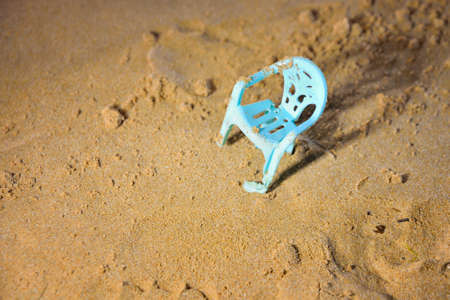 small blue chair in the sand at night