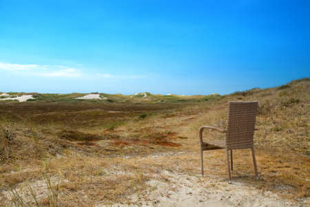 chair on a sand dune with a blue sky