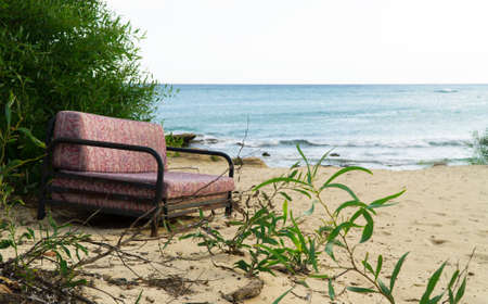 Old sofa on the sea beach.