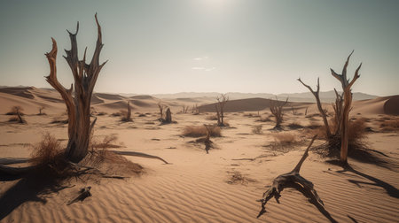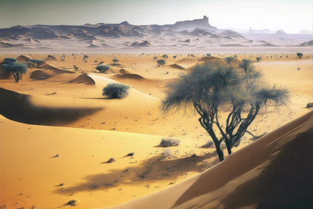 Desert landscape with sand dunes and trees in Dubai, United Arab Emirates generative ai