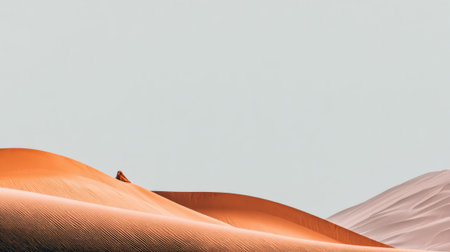 A serene desert scene featuring rolling sand dunes under a clear sky