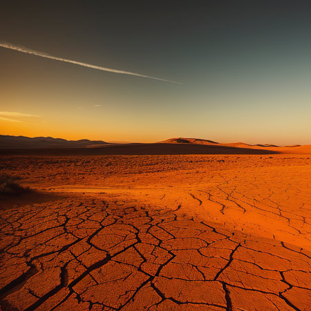 arid Clay soil Sun desert global worming concept cracked scorched earth soil drought desert landscape dramatic sunset