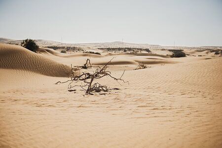 Sand dunes in the Sahara desert, Morocco, Africa. Vintage filter