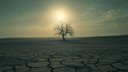 AI Generated. Desert pollution impact a bare tree in a parched landscape under a harsh sun