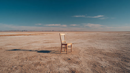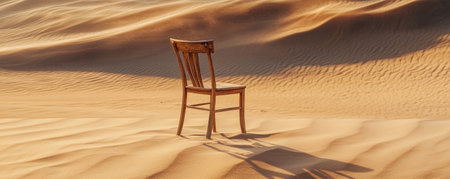 Wooden chair in sandy desert landscape, minimalism and solitude concept