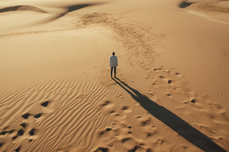 Serenity and Solitude: A Person Standing Firm on Sandy Shores -ar 3:2