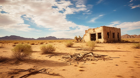 AI Generated. Empty wooden cabin sitting in the middle of a vast desert
