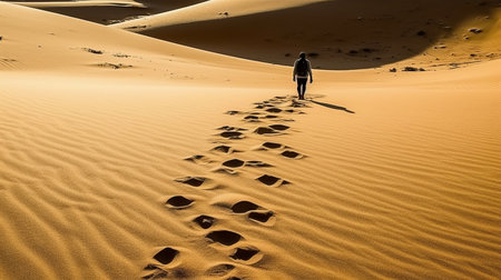 Hiker in the Sahara desert. Morocco. Africa. Sunset. generative ai