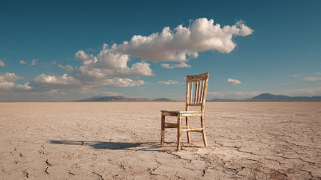 Old rustic empty chair at dry salt lake, Minimalism concept.