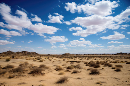open desert with clear blue sky and clouds in the background, created with generative ai