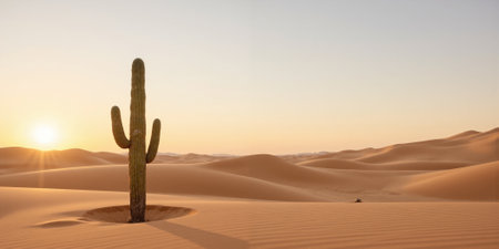 Golden Sands and Towering Cactus in Arid Desert