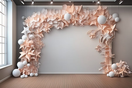 abstract background with colorful curved paper in light and shadow on white wall