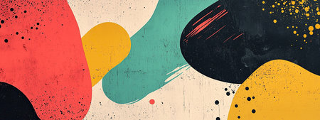Dynamic shapes filled with vibrant colors like red, yellow, and navy blue converge to form a lively abstract artwork. A smooth and engaging visual experience captivates the viewer's attention.