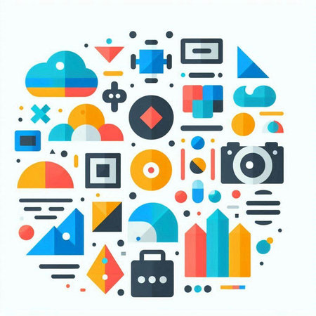 Playful geometric shapes create vibrant modern graphic elements