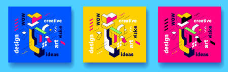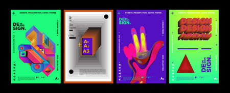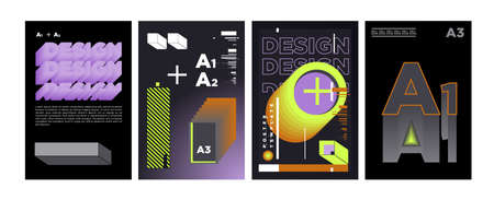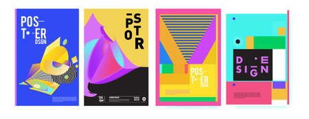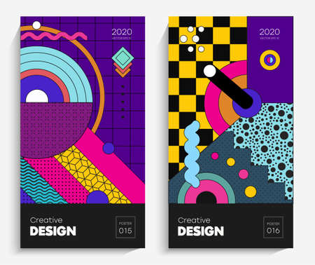 Abstract cover typography template. Posters layouts with bright colors, collage of artistic vibrant dynamic shapes and geometric forms. Social media banners set in retro design. Vector illustration.