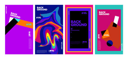 Wavy Colorful Marble Background Set. Trendy Gradient Shapes Composition for social media story.