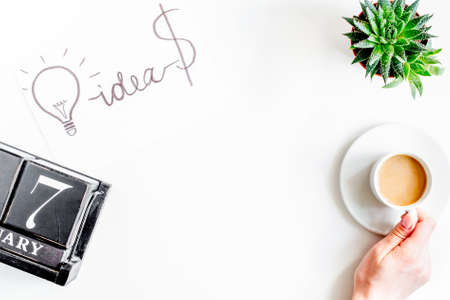 Top view of Idea word on wooden cube letter block on white background. Business concept