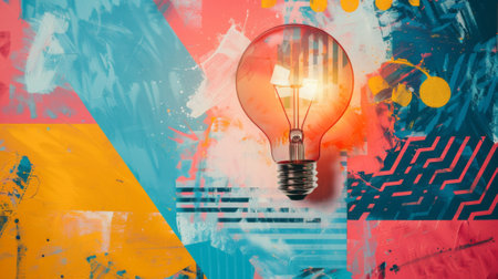 Creative and innovative concept, illuminated light bulb on a dynamic abstract background with geometric elements