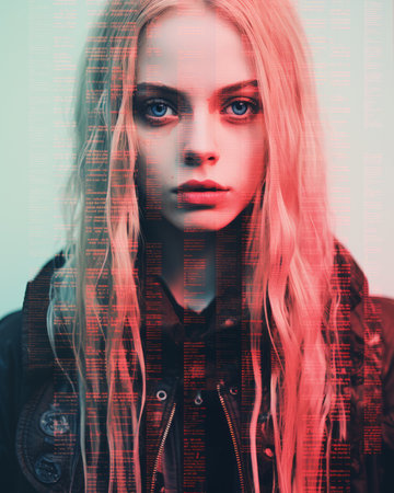 Digital portrait of young caucasian female with artistic glitch effect.