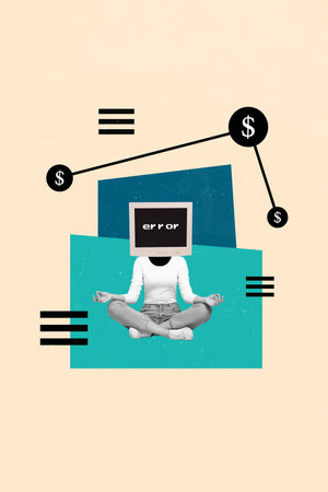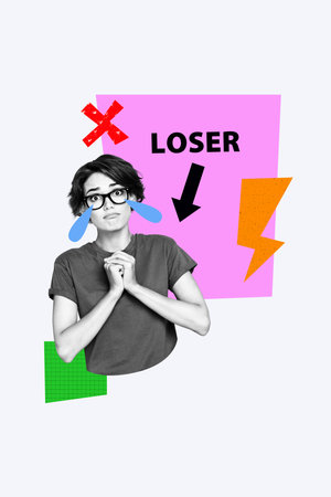 Composite trend artwork sketch image photo collage of copyspace bolt cross young lady confused stress cry drop stereotype mockery